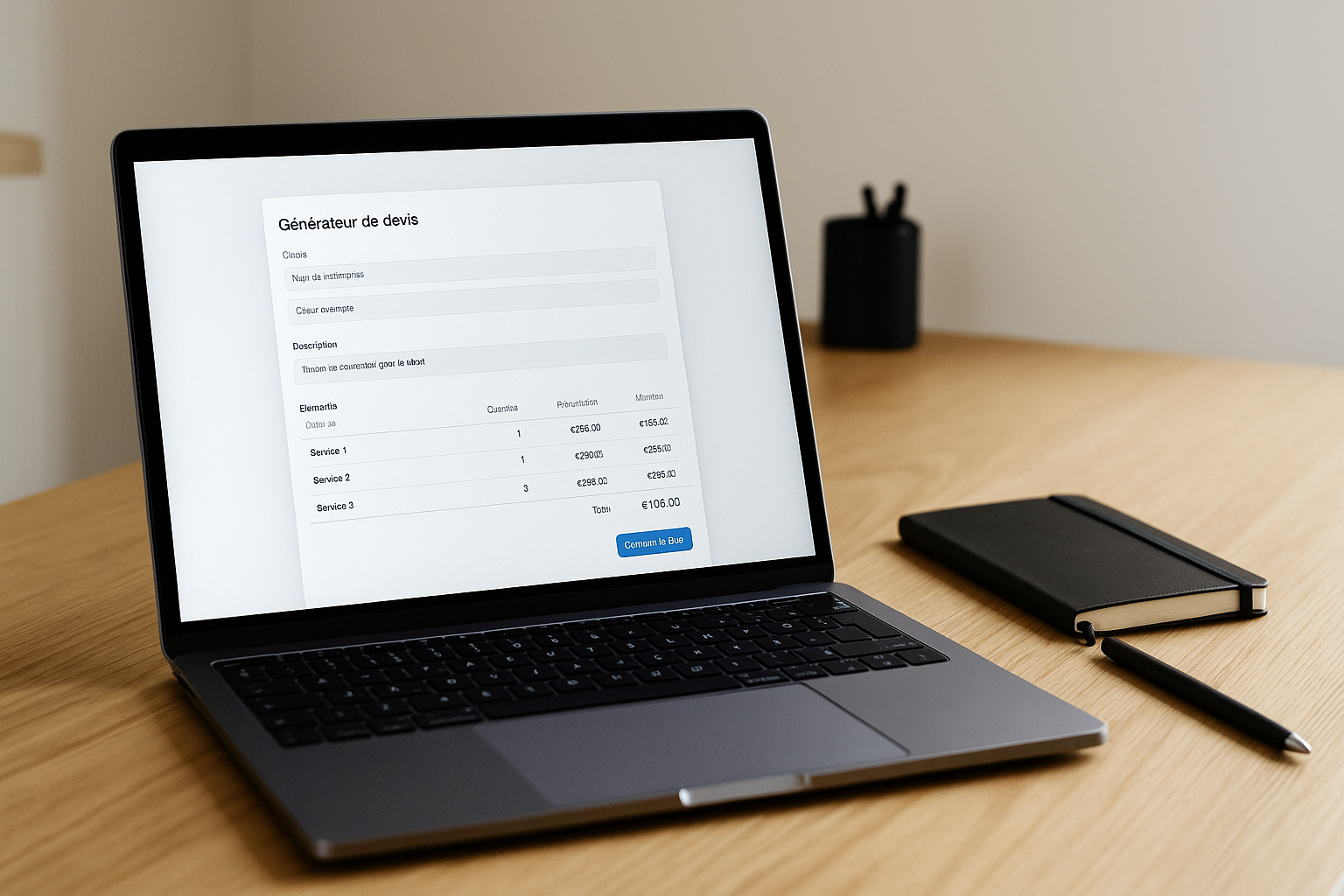 Si vos équipes passent trop de temps à produire des devis, ou si vos délais d’envoi freinent la conversion, l’intégration d’un générateur de devis sur mesure avec l’IA est un levier immédiat. L’outil s’adapte à votre métier, respecte vos règles et s’insère dans votre stack. Demandez un audit de 30 minutes pour cadrer le périmètre, l’intégration et le retour sur investissement. Rendez-vous sur valentin-sandillon.com pour initier l’échange.